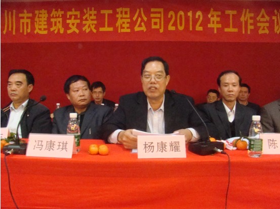 公司召開2012年工作會議【2012-1-30】 內容: 2012年1月30日上午,公司在大會議室召開2012年工作會議。會議由副總經理馮康琪主持,曾金慶同志作2011年生產工作總結,陳鹍同志作2011年質量安全工作總結,最后楊康耀總經理對2012年的工作提出要求。 圖為公司召開2012年工作會議。 圖為楊康耀總經理在會上作2012年工作安排。 圖為2012年工作會議場面。