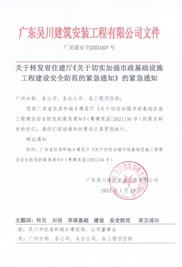 近日,在汕頭、揭陽兩市開展城鎮生活污水管網工程專項檢查時,我廳發現部分在建城鎮生活污水管網工程存在交通疏導與警戒措施不到位、通風照明和個人防護等安全防護器械缺失以及深基坑安全防墜網、防護圍欄設置不規范等嚴重安全隱患,面臨重大安全風險。為貫徹落實省委、省政府和住房城鄉建設部有關安全生產工作部署,堅決杜絕亡人事故,現就切實做好市政基礎設施工程建設安全防范緊急通知如下。