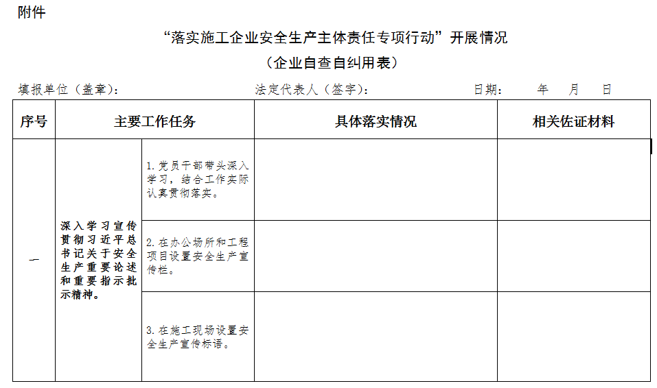 附件:“落實施工企業安全生產主體責任專項行動”開展情況(企業自查自糾用表)