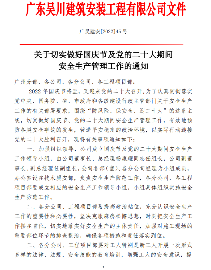 關(guān)于切實(shí)做好國慶節(jié)及黨的二十大期間安全生產(chǎn)管理工作的通知